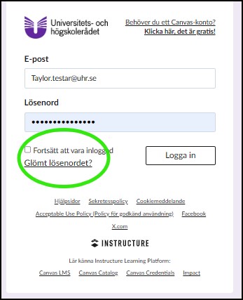 Har du glömt lösenordet kan du enkelt ordna ett nytt via startsidan genom att klicka på "Glömt lösenordet?"